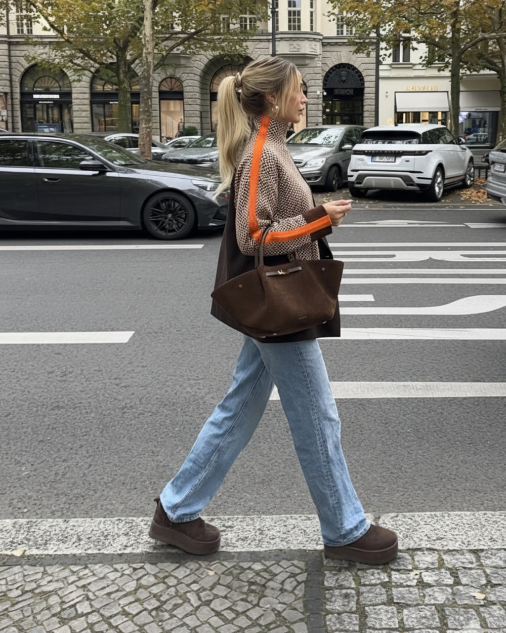 Este abrigo largo marrón destaca por su elegancia atemporal y su silueta fluida. Confeccionado en tejido de alta calidad, ofrece una caída estructurada y cómoda. Su tono cálido aporta un toque de lujo sutil, ideal tanto para el día a día como para ocasiones elegantes.